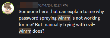 I checked the OffSec Discord and found similar complaints. Students were seeing false negatives with NetExec and were being advised to “never trust just one tool.” While valid advice, I didn’t want to just work around the problem. I wanted to know why two tools using the same protocol yielded different results.
