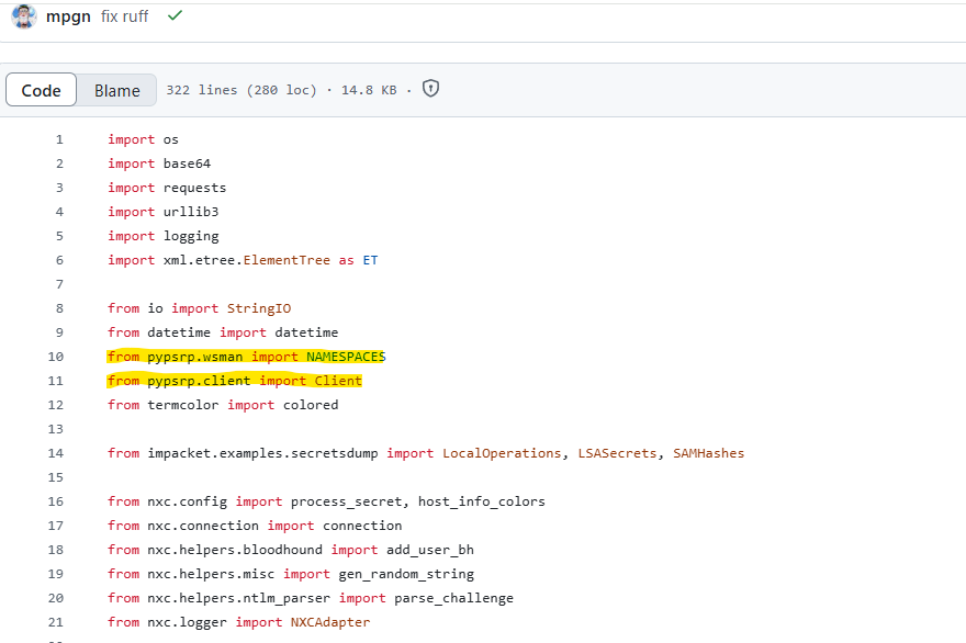 we can see that those are imported from the pypsrp library, so as the developer texted me, the core authentication does rely on the external library pypsrp.