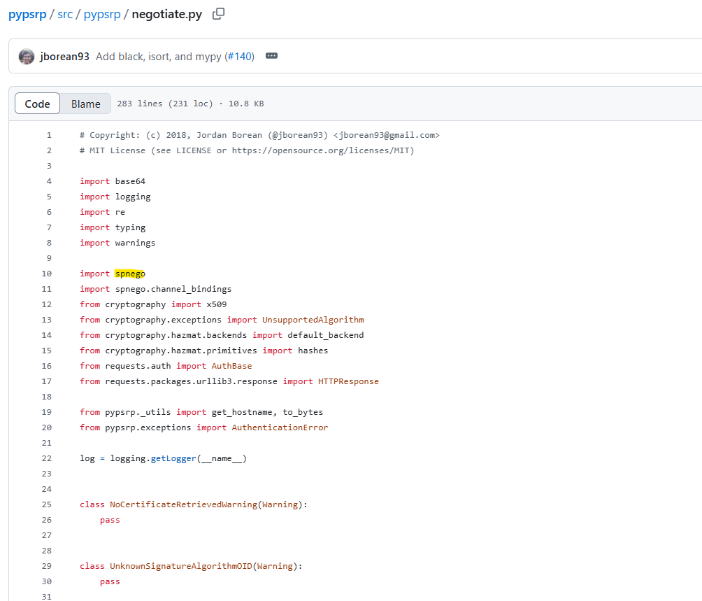 And more importantly, the spnego library, which is the library running under the hood of pypsrp for the actual NTLM authentication.