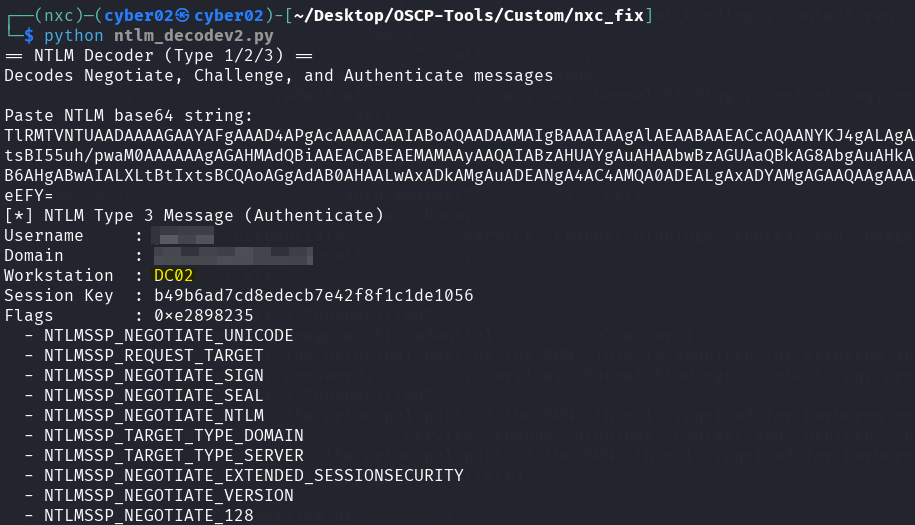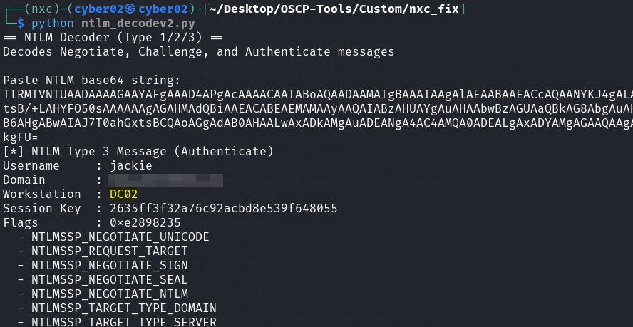 before using our script we export NETBIOS_COMPUTER_NAME="dc02" (dc02 is the server we authenticating to, so if it sees an authenticate from dc02 spoofed hostname it thinks it’s authenticating to itself and obviously dc02 is inside the domain so it accepts, we also can export NETBIOS_COMPUTER_NAME="" it also works with empty workstation value, but just to be safe we include the server name better.