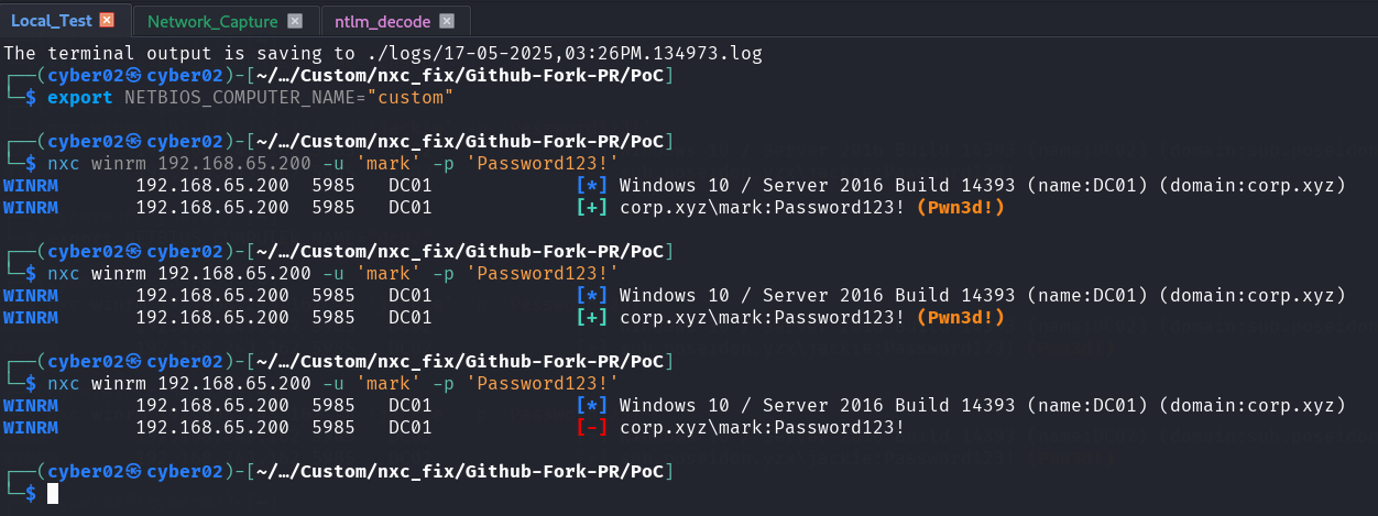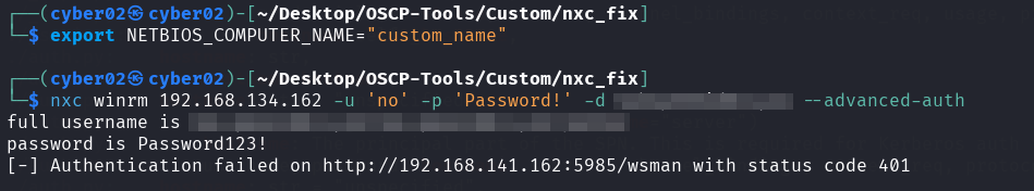 So even netexec default authentication mechanism without any external script rely on the environment variable for that, which makes sense since it uses the same ntlm-auth library, so to permanently fix netexec, all we need to do is set the environment variable to the hostname of the target just before any instance of pypsrp, while authenticating