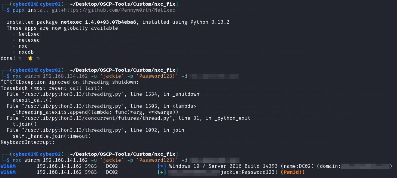 which I later fixed internally in the NetExec script and made a pull request.
