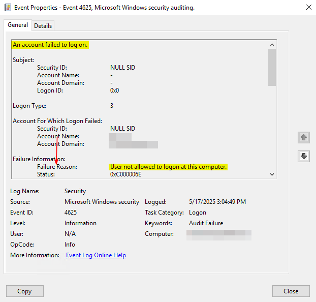 So the user can log in but not at this specific computer