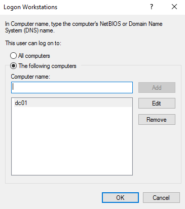 All I need to do is limit the logon computers to specific ones