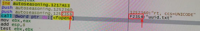 I went back to IDA Pro. I located the subroutine responsible for reading the file. It pointed to a data offset containing the string uuid.txt.